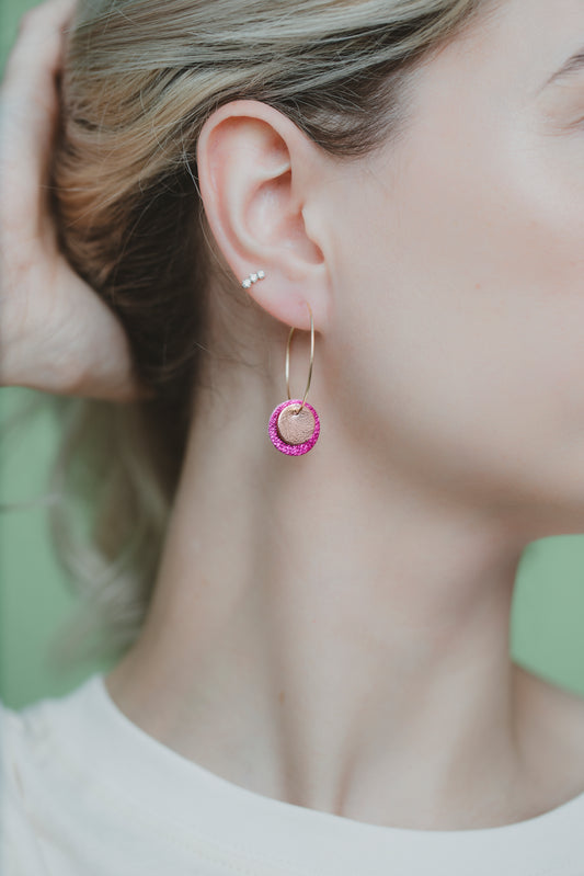 Half Moon Hoops -Gold Plated - Pink and Iridescent Silver