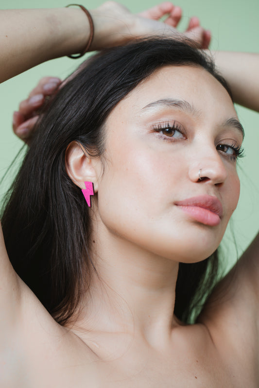 Half Moon Stud Earrings | Neon Pink