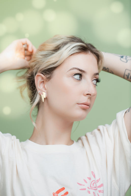 Small Lightning Bolt Studs | Yellow